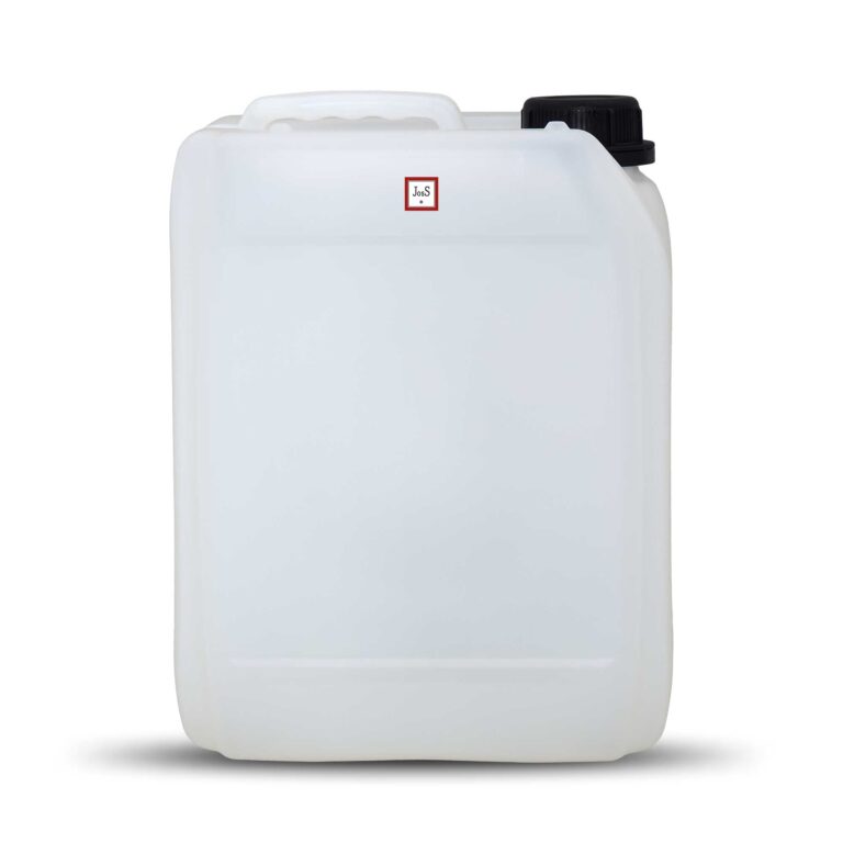 25-liter empty plastic canister with DIN VS 70 screw cap, UN-Y1.2 certified, in natural color and rectangular shape—suitable for safe handling and transport of larger volumes of liquids.