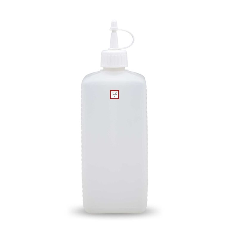 500ml empty plastic squeeze bottle with nozzle tip and cap, rectangular shape, natural color—ideal for precise dosing and industrial fluid handling.