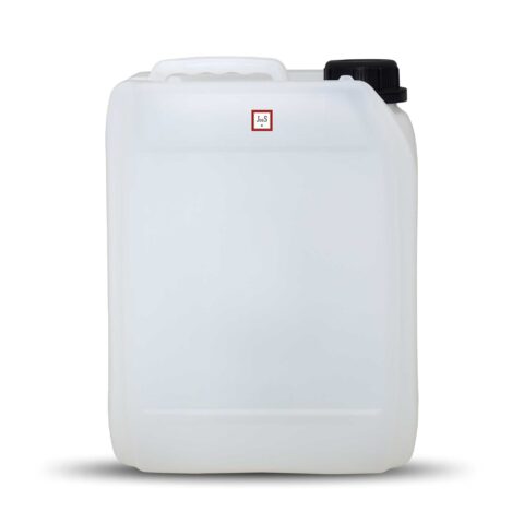 This 5-liter plastic canister is suitable for safe storage, transport, and handling of industrial liquids. It features a secure DIN VS 45 screw cap and complies with UN-Y1.9 certification for transport of hazardous substances.
