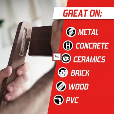 Bonds to metal, wood, ceramic, concrete, fiberglass, and many plastics