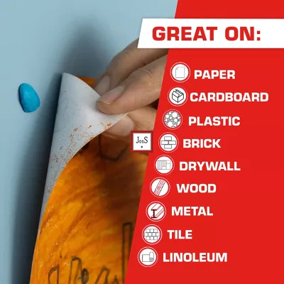 • Safe for painted walls, glass, metal, and finished wood