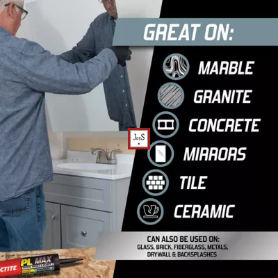 LOCTITE® PL Max Mirror, Marble & Granite is a high-strength, premium-grade adhesive formulated for securely bonding mirrors, marble, granite, and other sensitive surfaces without causing staining or damage.