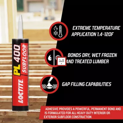 LOCTITE® PL 400 Heavy Duty Subfloor Adhesive is engineered for bonding subfloor panels, decking, and similar building components. It delivers exceptional strength, gap-filling performance, and durability for both interior and exterior construction.
