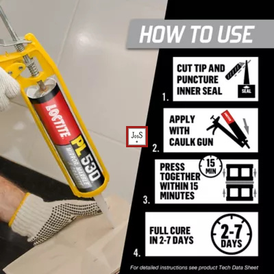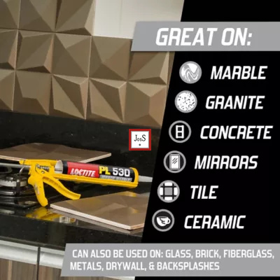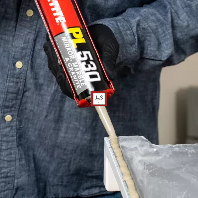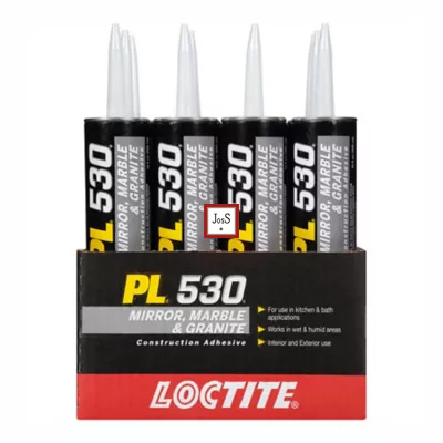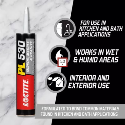 LOCTITE® PL 530 Mirror, Marble & Granite Adhesive is designed for bonding kitchen and bath materials such as mirrors, marble, and granite. It delivers a durable, solvent-based bond that performs well in wet and humid conditions, making it ideal for countertops, backsplashes, and decorative panels.