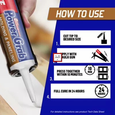 LOCTITE® Power Grab Molding & Paneling Adhesive is designed for interior installation of decorative trims, moldings, and wall panels. It offers superior instant grab and eliminates the need for nails or screws, allowing for faster, cleaner installations.