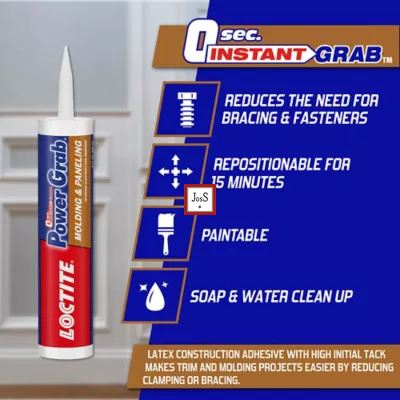 LOCTITE® Power Grab Molding & Paneling is a water-based adhesive with instant grab technology, specifically designed for the installation of molding, paneling, and trim without the need for nails or screws.