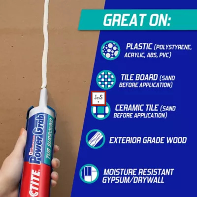 LOCTITE® Power Grab Tub Surround is a water-based adhesive specifically designed for bonding tub and shower surround panels, offering strong adhesion without damaging plastic panels.