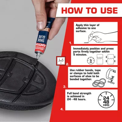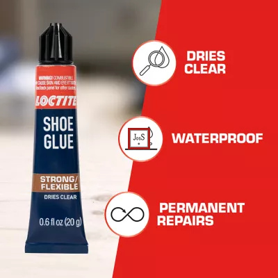 LOCTITE® Shoe Glue is a flexible and durable adhesive designed to bond, repair, and protect footwear made of leather, rubber, vinyl, canvas, and other materials. Its waterproof and impact-resistant formula ensures long-lasting performance even under heavy usage and outdoor conditions.