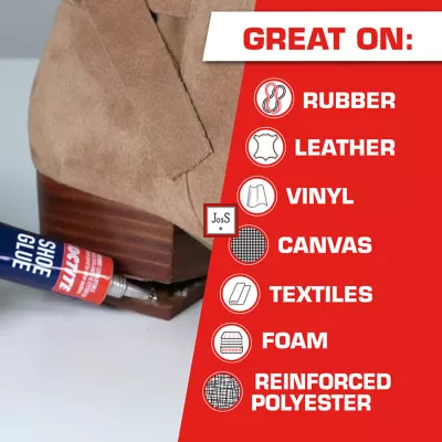 Bonds leather, rubber, vinyl, canvas, and most shoe materials