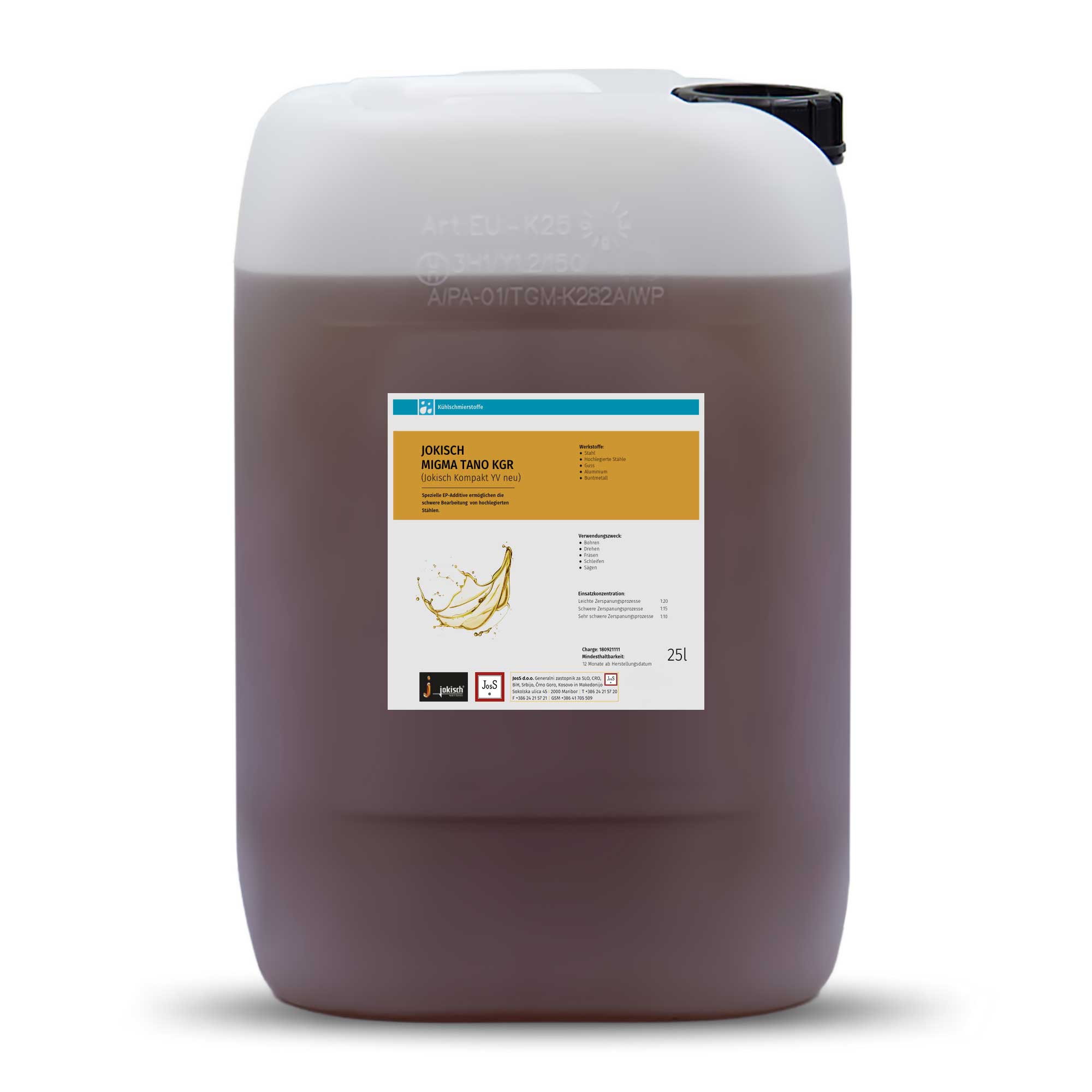Jokisch Migma Tano KGR is a universally applicable, mineral oil-based, water-miscible cooling lubricant that is ideally suited for general machining.
