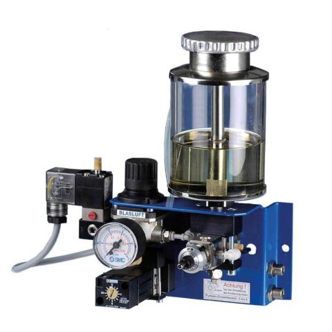 Compact minimum quantity lubrication (MQL) system for external lubrication of cutting and forming tools, featuring adjustable spray output, up to 2 nozzles, and electrical control compatibility.