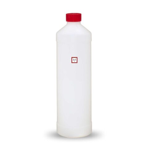 1000ml empty standard plastic bottle with child-resistant cap, natural color and round shape—ideal for safe storage of chemical or industrial liquids.